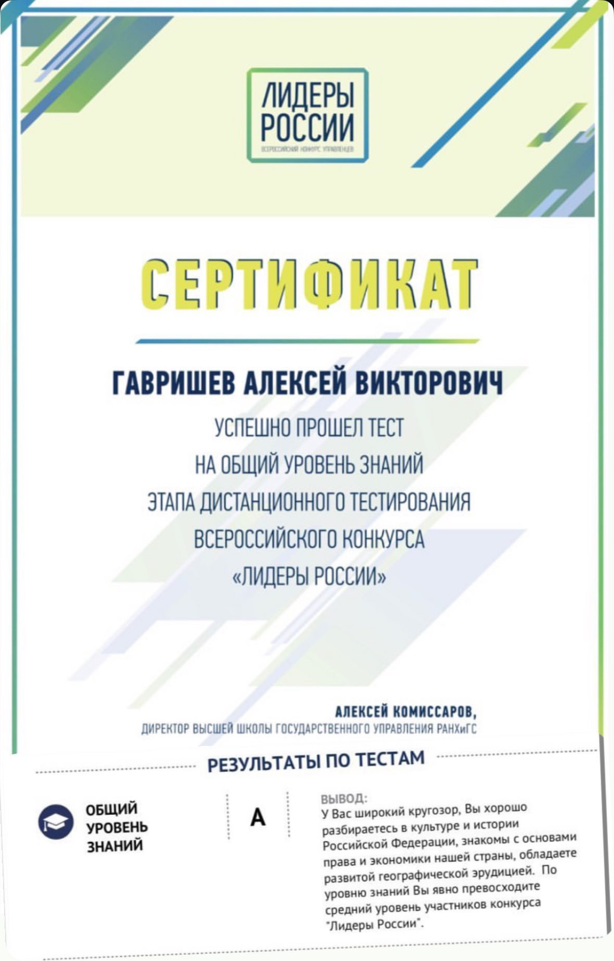 В 2017 году стал участником конкурса «Лидеры России», показав один из высших результатов по уровню эрудиции *.